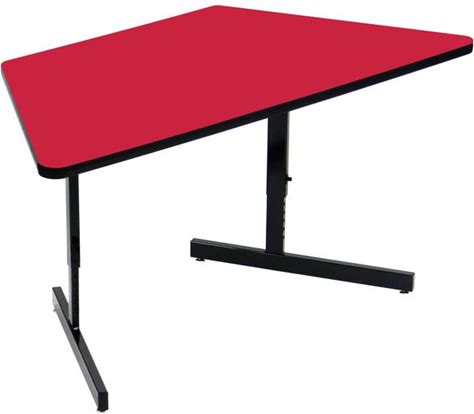Correll 30" X 60" Red Finish Trapezoid Premium Laminate 21" - 29" Adjustable Height High Pressure Top Computer Table
