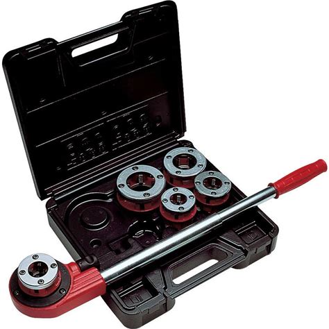 RIDGID 36345 00-R Exposed Ratchet Threader Set, Ratcheting Pipe Threading Set Of 1/2-Inch To 1-Inch NPT Pipe Threading Dies And Manual Ratcheting Pipe Threader,Red/Black,Small