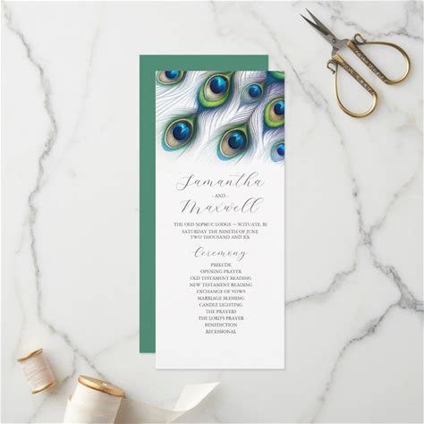 Tea Length Wedding Program Template Peacock