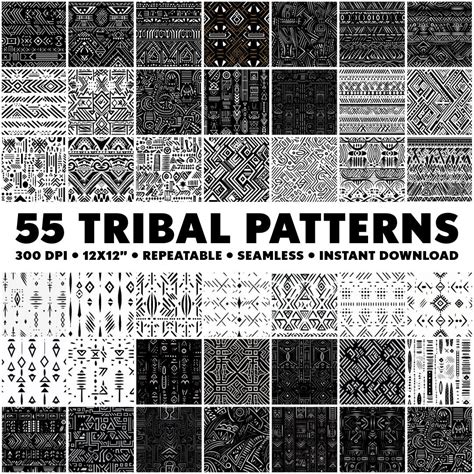 55 Tribal Patterns Seamless Tribal Patterns Endless Tribal Pattern Infinite Tribal Design Cultural Seamless Indigenous Pattern Monochrome