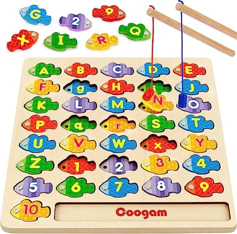 Coogam Magnetic Alphabet Numbers Fishing Game, Wooden Abc Letter Numbers Color Matching Puzzle Fine Motor Montessori Educational Toy For Preschool 3 4 5 Year Old Toddlers