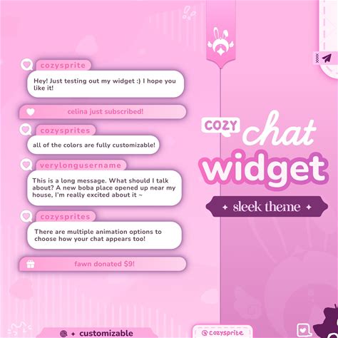 Sleek Chat Widget | Customizable Colors, Cute Chat, Minimal Theme | Pastel Pink | Chat Box And Alerts For Twitch Streams