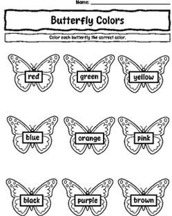 Butterfly Color Identification Worksheet | Spring Coloring Activity | Prek & K