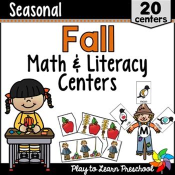 Fall Math Literacy Centers - Preschool Prek Fun Hands-On Activities & Games